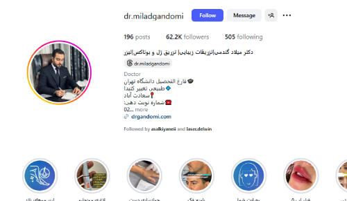 دکتر میلاد گندمی رتبه 58 کنکور سراسری و فارغ التحصیل دانشگاه علوم پزشکی تهران می باشند، که در زمینه زیبایی فعالیت می کنند. ایشان دارای مدرک پوست و زیبایی بیوکر انگلستان و مدرس دوره های زیبایی پزشکان هستند.