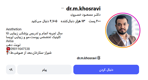 دکتر مسعود خسروی از متخصصان باتجربه پوست، مو و زیبایی در شیراز است که در مطب خود پذیرای مراجعین میباشد. او با داشتن دکترای حرفهای پزشکی و تسلط بر روشهای نوین جوانسازی، خدمات متنوعی مانند تزریق ژل و بوتاکس، مزوتراپی مو و صورت، کربوکسیتراپی، هایفوتراپی، میکرونیدلینگ، لیفت با نخ و لیزر موهای زائد ارائه میدهد. دکتر خسروی با رویکردی دقیق و علمی تلاش میکند هر فرد به ظاهری طبیعیتر، شادابتر و هماهنگ با ویژگیهای چهره خود دست یابد. موقعیت مناسب مطب نیز امکان دسترسی آسان برای ساکنان شیراز را فراهم کرده است.