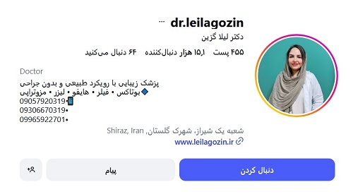 دکتر لیلا گزین با داشتن بیش از 15 سال سابقه کاری حرفهای در حوزه پوست مو و زیبایی یکی از بهترین پزشکان در زمینه مزوتراپی شناخته میشود. دکتر لیلا گزین تمامی خدمات زیبایی خود را در محیط بهداشتی ارائه میدهد و از جدیدترین استانداردهای زیبایی در ارائه این خدمات به کار میگیرد. لازم به ذکر بوده که دکتر لیلا گزین دارای بورد تخصصی در حوزه پوست مو و زیبایی بوده و تمامی مجوزهای لازم برای ارائه خدمات زیبایی را دارد.