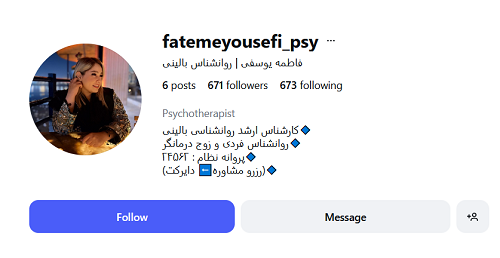 کارشناس ارشد روانشناسی عمومی دارای پروانه اشتغال از سازمان نظام روانشناسی و مشاوره ایران با شماره 1590471 عضو سازمان نظام روانشناسی و مشاوره ایران شماره نظام: 48751، گذراندن دوره و کارگاه های: نوروفیدبک از تئوری تا عملکرد نوروفیدبک درمان هیجان مدار آموزش مدرسین مراقبین اجتماعی نقشه مغزی (QEEG) (EEG) و (QEEG) اصول و فنون مصاحبه تشخیصی و بالینی درمان پذیرش و تعهد ارزیابی تشخیص و درمان اختلالات عملکرد جنسی زوجین درمان شناختی-رفتاری (CBT) آزمون های ترسیمی کودکان در تشخیص و مداخلات روانشناختی
