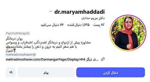دکتر مریم حدادی دانشجوی دکترای روانشناسی و دارای مدرک کارشناسی ارشد روانشناسی بالینی می باشد و از بهترین روانشناس نوجوان در شیراز محسوب می شود. ایشان دوره های بسیار معتبری در زمینه زوج درمانی، درمان وسواس و مشاوره طلاق گذراندند و هم اکنون به عنوان مشاور کودک، مشاور خانواده و مشاور نوجوانان مشغول به فعالیت هستند. دکتر حدادی هم اکنون عضو سازمان نظام روانشناسی و مشاوره ایران و همچنین انجمن بین المللی روانشناسی بالینی آلمان و جهان می باشد و از تجربه و مهارت بالایی در این زمینه برخوردار است. ایشان برگزار کننده کارگاه های متعدد در زمینه های گوناگون فرزندپروری و پیشگیری از اختلالات روانپزشکی بودند و یکی از برترین گزینه ها برای شما عزیزان محسوب می شوند.