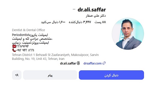 دکتر علی صفار متخصص جراحی لثه و ایمپلنت های دندانی هستند. ایشان به عنوان یکی از بهترین دکتر بلیچینگ در زعفرانیه، رتبه برتر بورد تخصصی را کسب کرده و اکنون مدرس دوره های ایمپلنت برای دندانپزشکان می باشند که مدرک فلوشیپ icoi و مستر پروتز و زیبایی از وین و مالمو را نیز دارند و شما عزیزان در صورت نیاز می توانید به مطب شخصی ایشان مراجعه نمایید.