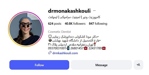 دکتر مونا کشکولی، متولد ۱۶ شهریور ۱۳۶۳، دندانپزشکی با تجربه و متخصص در حوزه زیبایی و طراحی لبخند است. ایشان در سال ۱۳۹۰ موفق به اخذ مدرک دکترای حرفهای دندانپزشکی از دانشکده دندانپزشکی دانشگاه شهید بهشتی شدند و از آن زمان تاکنون حضور فعال و مستمر در کنفرانسها و ارائه پژوهشهای علمی متعدد داشتهاند. دکتر کشکولی عضو انجمن دندانپزشکان ایران بوده و با بیش از ۱۲ سال سابقه در دندانپزشکی و ۸ سال تمرکز تخصصی در حوزه زیبایی و طراحی لبخند، مهارت گستردهای در ارائه خدمات نوین دندانپزشکی دارند. از جمله دستاوردهای آموزشی و حرفهای ایشان میتوان به فلوشیپ دندانپزشکی پیشرفته در سال ۲۰۲۱، دورههای متعدد زیبایی از سال ۲۰۱۲، کورسهای تخصصی پروتزی و زیبایی ایمپلنت، درمانهای زیبایی محافظهکارانه ۲۰۲۰، طراحی لبخند و دندانپزشکی دیجیتال ۲۰۱۶ و برگزاری دوره آموزش کامپوزیت نیر برای دندانپزشکان در سال ۲۰۱۹ اشاره کرد، که همگی نشان دهنده تعهد ایشان به ارتقای دانش و مهارت در زمینه دندانپزشکی زیبایی است.