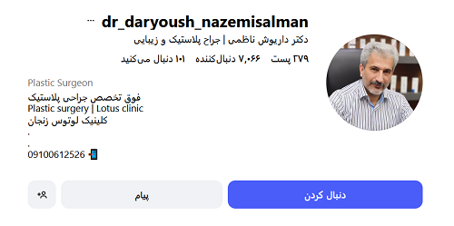 دکتر داریوش ناظمیان سلمان جزو بهترین جراح بلفاروپلاستی در زنجان است. ایشان جراح و متخصص پلاستیک و زیبایی است که دوره های تکمیلی خود را با رتبه بالا اخذ کرده است. دکتر ناظمیان پزشکی با حوصله است که بیماران را با دقت معاینه و درمان می کند. وی مطبی بزرگ و مجهز دارد که در آن خدمات متنوعی به زیباجویان ارائه می دهد. ایشان تعرفه های معقولی دارد که افراد می توانند از آن بهره مند شوند.