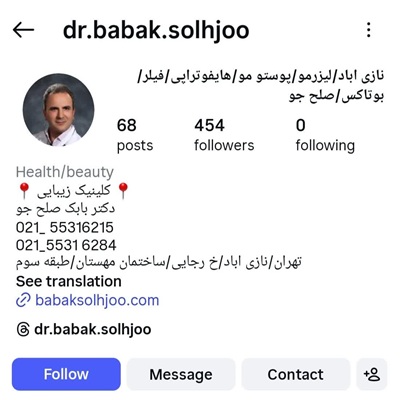 دکتر بابک صلحجو یکی از چهرههای برجسته در حوزه پوست و زیبایی است که بهویژه در تزریق فیلر بادی مهارت بالایی دارد و نتایج طبیعی و متناسب با فرم بدن ایجاد میکند. کلینیک زیبایی دکتر صلحجو با بهرهمندی از بروزترین تکنولوژیهای دنیا، تمام خدمات زیبایی خود را زیر نظر مستقیم پزشک و با رعایت کامل اصول ایمنی و بهداشتی انجام میدهد. ارائه مشاورههای حضوری و تلفنی، استفاده از مواد اولیه با کیفیت و برگزاری جلسات درمانی منظم از ویژگیهای کلینیک اوست.