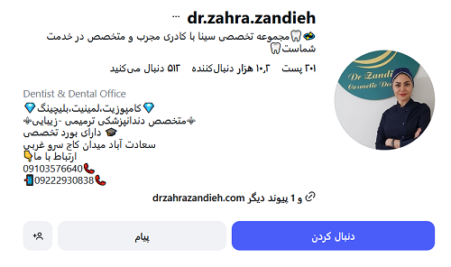 دکتر زهرا زندیه از جمله بهترین دکتر دندانپزشک در سعادت آباد است. ایشان متخصص دندانپزشکی ترمیمی و زیبایی است که مدارک تخصصی خود را از دانشگاه علوم پزشکی تهران دریافت کرده است. دکتر زندیه دندانپزشکی ماهر و کاربلد است که 15 سال سابقه درخشان در این حوزه دارد. مطب ایشان پیشرفته و مجهز است و تمامی پروتکل های بهداشتی در آن رعایت می شود. بیماران وی رضایتمندی بالایی از خدماتش دارند.