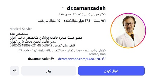 دکتر مهران زمانزاده با شماره نظام پزشکی ۷۶۸۳۷ متخصص بیماریهای غدد داخلی، با سالها تجربه در تشخیص و درمان اختلالات هورمونی و متابولیک، خدمات تخصصی خود را در زمینه مشکلات تیروئید، دیابت، چاقی، اختلالات غدد فوقکلیوی و سایر بیماریهای غدد ارائه میدهند. ایشان عضو هیئت مدیره جامعه پزشکان متخصص داخلی ایران، مدیر انجمن دیابت شرق تهران و عضو انجمن دیابت اروپا هستند. دکتر زمانزاده با بهرهگیری از جدیدترین روشهای تشخیصی و درمانی، تمرکز ویژهای بر مراقبت شخصی و ارتقای کیفیت زندگی بیماران دارند و با رویکردی علمی و حرفهای، همراهی مطمئن برای مدیریت سلامت شما هستند.در حال حاضر ایشان با بیمارستان های فرمانیه، دادگستری و کلینیک های تخصصی سبحان و مهر قرارداد دارند.