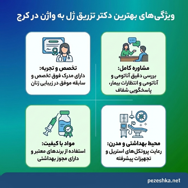 • بررسی تخصص و تجربه: دنبال پزشک متخصص زنان، پوست یا زیبایی با سابقه کار در تزریق ژل و تسلط به آناتومی ناحیه تناسلی باشید.