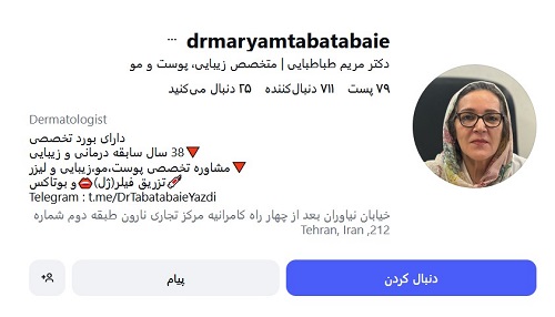 دکتر مریم طباطبایی یزدی از جمله بهترین دکتر تزریق چربی در نیاوران است. ایشان متخصص پوست، مو و زیبایی است که پزشکی عمومی و بورد تخصصی خود را از دانشگاه علوم پزشکی تهران اخذ کرده است. دکتر طباطبایی پزشکی دلسوز و مهربان است که برای بیماران وقت کافی اختصاص می دهد. افراد می توانند با خیال راحت به مطب ایشان مراجعه کنند.