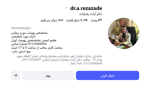 - بهترین دکتر ریزش مو در مازندران باید در این زمینه ماهر و متخصص باشد و مدارک علمی خود را از دانشگاه های معتبر کشور اخذ کرده باشد.