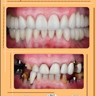 - بازسازی کامل دهان با ایمپلنت و روکش های سرامیکی
