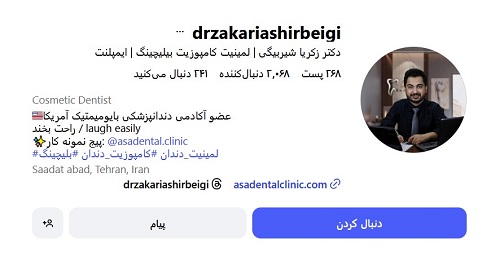 دکتر زکریا شیربیگی با داشتن مدرک دکترای دندانپزشکی یکی از مجربترین دندانپزشکهای تهران بوده و جزو بهترین دکتر ایمپلنت دندان در سعادت آباد محسوب میشود. دکتر شیر بیگی همواره رضایت مشتریان را در ارائه خدمات دندانپزشکی در نظر میگیرد و در ارائه این خدمات بهترین مواد را به همراه بهترین تجهیزات به کار میگیرد.