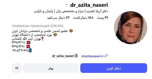 | دکتر آزیتا ناصری | لاپاراسکوپی، مراقبت بارداری | 02144974290 |
