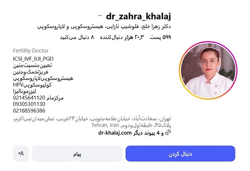 | دکتر زهرا خلج | جراحی زیبایی زنان، درمان ناباروری | 02188596386 |