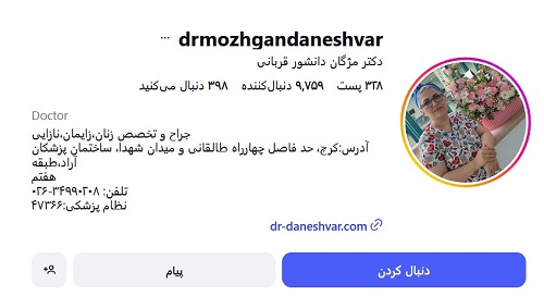 | دکتر غزاله موسوی زاده | درمان سرطان رحم، درمان ناباروری | 02144328244 |