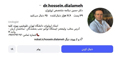 دکتر دکتر حسین دیالمه با ترکیبی از علم، تجربه و تخصص در حوزه ارولوژی، مسیر حرفهای خود را با فارغالتحصیلی در رشته پزشکی عمومی از دانشگاه علوم پزشکی شیراز آغاز کرد و سپس با اخذ تخصص اورولوژی از دانشگاه علوم پزشکی تهران آن را ادامه داد. ایشان از سال ۱۳۹۵ بهعنوان استاد در دانشگاه علوم پزشکی تهران مشغول فعالیت هستند و در سال ۱۳۹۹ نیز موفق به دریافت فلوشیپ پیوند کلیه شدند. انتشار بیش از ۴۰ مقاله در مجلات معتبر بینالمللی و همکاری بهعنوان داور در چندین نشریه علمی، بخشی از دستاوردهای پژوهشی ایشان به شمار میرود.