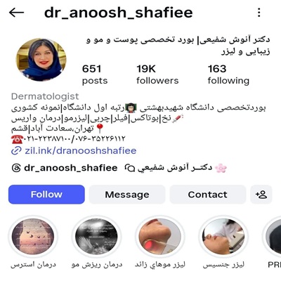 دکتر آنوش شفیعی، متخصص پوست و مو، یکی از پزشکان برجسته و با سابقه در زمینه زیبایی و درمان‌های پوست و مو است. ایشان دارای رتبه برتر در مقالات بین‌المللی درماتولوژی و رتبه اول دانشگاه و نمونه کشوری هستند و همچنین عضو آکادمی درماتولوژی آمریکا می‌باشند. تجربه و مهارت دکتر شفیعی در انجام مزوتراپی و سایر روش‌های درمانی پوست و مو باعث شده مراجعه‌کنندگان نتایج مؤثر و طبیعی دریافت کنند و از درمان کاملاً رضایت داشته باشند.