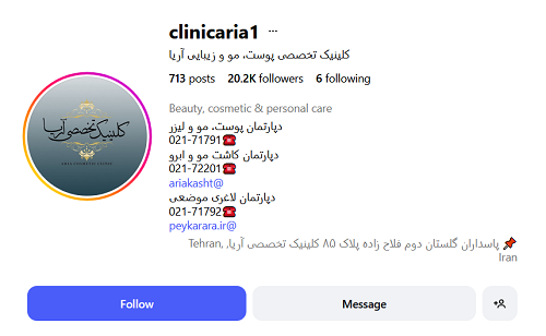 کلینیک تخصصی آریا، یکی از معتبرترین مراکز پوست، مو، زیبایی و لاغری در شمال تهران (پاسداران) است که با تکیه بر دانش علمی روز و تیمی از پزشکان و متخصصان برجسته، خدماتی ایمن و باکیفیت را به زیباجویان ارائه می‌دهد. این مجموعه با رویکردی حرفه‌ای و علمی، بر این باور است که زیبایی واقعی از سلامت و هارمونی درونی آغاز می‌شود. به همین دلیل، تمامی خدمات در کلینیک آریا با بهره‌گیری از پیشرفته‌ترین فناوری‌ها و تجهیزات مدرن مورد تأیید وزارت بهداشت انجام می‌گیرد.