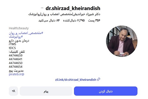 دکتر شیرزاد خیراندیش متخصص اعصاب و روان ( روانپزشک ) عضو سازمان نظام پزشکی ایران و عضو انجمن روان پزشکان ایران که با رتبه خوب از دانشگاه های ایران فارغ التحصیل هستند . ایشان در حال حاضر از اعضای فعال هیات مدیره بزرگترین و مجهزترین بیمارستان اعصاب و روان خصوصی  ایران هستند. سابقه طولانی در درمان اختلالات روانپزشکی و روان شناسی دارند و خدمات تخصصی ایشان ، ویزیت ، مشاوره و روانکاوی و درمان اختلالات روانپزشکی بدون دارو با دستگاه تحریک مغناطیسی مغز آر تی ام اس rTMS ، درمان اختلالات روانپزشکی با دستگاه تی دی سی اس tDCS درمان اختلالات روانپزشکی کودک و نوجوان ( بیش فعالی و عدم تمرکز ، اضطراب… ) با دستگاه نوروفیدبک و tDCS میباشد