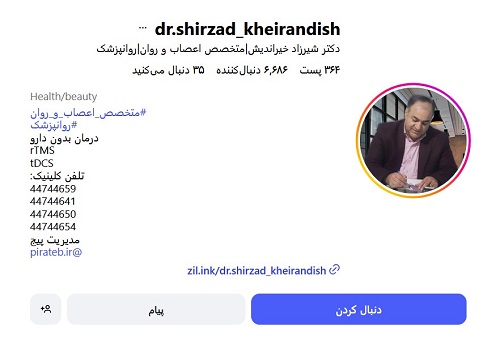 دکتر شیرزاد خیراندیش متخصص اعصاب و روان ( روانپزشک ) عضو سازمان نظام پزشکی ایران و عضو انجمن روان پزشکان ایران که با رتبه خوب از دانشگاه های ایران فارغ التحصیل هستند . ایشان در حال حاضر از اعضای فعال هیات مدیره بزرگترین و مجهزترین بیمارستان اعصاب و روان خصوصی ایران هستند. سابقه طولانی در درمان اختلالات روانپزشکی و روان شناسی دارند و خدمات تخصصی ایشان ، ویزیت ، مشاوره و روانکاوی و درمان اختلالات روانپزشکی بدون دارو با دستگاه تحریک مغناطیسی مغز آر تی ام اس rTMS ، درمان اختلالات روانپزشکی با دستگاه تی دی سی اس tDCS درمان اختلالات روانپزشکی کودک و نوجوان ( بیش فعالی و عدم تمرکز ، اضطراب… ) با دستگاه نوروفیدبک و tDCS می باشد.