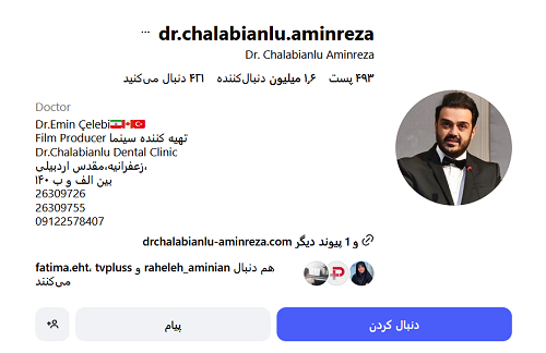 دکتر امینرضا چلبیانلو متولد ۱۳۶۲ در تبریز، جراح و دندانپزشک شناختهشدهای است که تحصیلات دندانپزشکی خود را در تهران آغاز کرده و دورههای تکمیلی و تخصصی ایمپلنت، فلوشیپ و مسترشیپ جراحی پیشرفته ایمپلنت را در انگلستان، کانادا و آمریکا گذرانده است. او با کد نظام پزشکی ۱۴۵۳۸۳، عضو انجمن ایمپلنتولوژی آمریکا بوده و در کلینیک خود در زعفرانیه تهران خدمات تخصصی از جمله ایمپلنتهای پیشرفته، پروتز ایمپلنت، پیوند استخوان و لثه، جراحی سینوسلیفت، جراحی لثه، رفع کیستهای دهانی، فرنوکتومی، لمینت دندان و سایر درمانهای زیبایی و ترمیمی را ارائه میدهد. او چهرهای فعال در رسانه، چندزبانه و نویسنده کتابهای تخصصی حوزه ایمپلنت است و از دید بیماران نیز بهعنوان یکی از دندانپزشکان حرفهای و باتجربه تهران شناخته میشود.