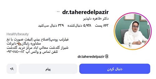 دکتر طاهره دلپذیر با داشتن بیش از 30 سال سابقه کاری در حوزه پزشکی و زیبایی توانسته است عنوان بهترین دکتر ژل لب روسی در شیراز را به خود اختصاص دهد. ایشان فارغ التحصیل دانشگاه علوم پزشکی شیراز بوده و سابقه تحصیلی درخشانی را نیز در کارنامه خود به ثبت رسانده است. لازم به ذکر بوده که دکتر طاهره دلپذیر در ارائه خدمات پزشکی و زیبایی خود از بهترین مواد و دستگاههای مجهز پیشرفته استفاده میکند.