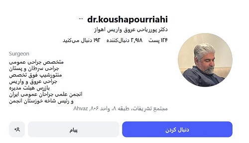 دکتر کوشا پورریاحی از متخصصان جراحی عمومی و جراحی عروق هستند که سابقهای طولانی در تشخیص و درمان بیماریهای عروقی و واریس دارند. تمرکز اصلی فعالیتهای ایشان بر درمان واریس پا با روشهایی مانند اسکلروتراپی، لیزر و تکنیکهای نوین جراحی عروق است. دکتر پورریاحی بهعنوان عضو انجمن جراحان ایران و با حضور در کمیتههای علمی مرتبط، نقش فعالی در حوزه تخصصی خود ایفا کردهاند و به دلیل تجربه و مهارت بالا، از پزشکان شناختهشده این زمینه به شمار میروند. دامنه تخصص ایشان همچنین شامل درمان اختلالات مادرزادی عروقی، جراحی تنگیهای عروقی و انجام انواع جراحیهای عمومی میباشد.