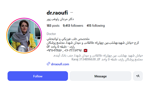 مرکز تخصصی دکتر رئوفی پور در شهر کرج تاسیس شده است و از بهترین مرکز اسکلروتراپی در ایران می باشد. دکتر رئوفی پور متخصص طب فیزیکی و توانبخشی هستند و تحصیلات عمومی خود را در دانشگاه علوم پزشکی جندی شاپور در سال ۱۳۷۷ آغاز نمودند. ایشان در سال ۱۳۹۰ وارد رشته تخصصی طب فیزیکی و توانبخشی در دانشگاه علوم پزشکی شدند و سپس به دانشگاه تهران انتقال یافتند. وی از سال ۱۳۹۶ در مطب شخصی خود واقع در شهر کرج فعالیت می کند. کلینیک ایشان مجهز به پیشرفته ترین دستگاه های روز دنیا می باشد و انواع واریس های عنکبوتی را نیز با روش های موثری درمان خواهد کرد.