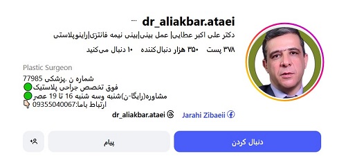 دکتر علیاکبر عطایی یکی از جراحان برجسته پلاستیک و زیبایی در ایران است. او با کسب رتبه اول بورد فوق تخصصی در دانشگاه علوم پزشکی اصفهان، توانست جایگاه علمی قابلتوجهی را به دست آورد و سالها بهعنوان عضو هیئت علمی دانشگاه علوم پزشکی فعالیت کند. دکتر عطایی بهعنوان عضو رسمی انجمن جراحان پلاستیک و زیبایی ایران شناخته میشود و با بیش از ۱۷ سال سابقه تخصصی در حوزه جراحی پلاستیک، زیبایی و ترمیمی، تجربهای گسترده در این رشته دارد. ایشان طی سالهای فعالیت خود در بخش جراحی فوقتخصصی پلاستیک و ترمیمی دانشگاه علوم پزشکی ایران، هزاران عمل موفق زیبایی و ترمیمی را انجام داده و به دلیل مهارت، دقت و نتایج طبیعی، همواره مورد توجه متقاضیان جراحی زیبایی بوده است.