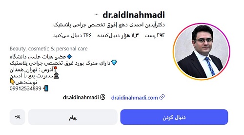 دکتر آیدین احمدی دهج، جراح و متخصص پلاستیک در تهران، دارای بورد فوق تخصصی جراحی بوده و به عنوان یکی از اعضای فعال انجمن جراحان پلاستیک و زیبایی ایران شناخته میشود. او در حوزه انواع جراحیهای زیبایی از جمله جراحی شکم و پیکرتراشی، جراحیهای زیبایی و ترمیمی سینه و همچنین عملهای زیبایی صورت فعالیت دارد و بهویژه در زمینه لیفت صورت به عنوان یکی از جراحان برجسته مطرح است. دکتر احمدی دهج با برخورداری از تجربه گسترده و دانش تخصصی حاصل از دوره بورد تخصصی جراحی پلاستیک دانشگاه تهران، خدمات حرفهای و به روز را در حوزه زیبایی و ترمیمی ارائه میدهد.