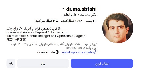 دکتر محمد علی ابطحی جراح و متخصص چشم می باشد که با کسب رتبه برتر بورد تخصصی توانست در رشته فلوشیپ قرنیه و لیزیک از دانشگاه علوم پزشکی تهران فارغ التحصیل شود. ایشان دارای سال ها تجربه در دانشگاه علوم پزشکی تهران می باشد و سابقه فعالیت به عنوان هیئت علمی در بخش خصوصی در کشورهای ایران و دبی را نیز دارا است. دکتر ابطحی تاکنون هزاران جراحی موفقیت آمیز را در کارنامه پزشکی خود به ثبت رسانده است و یکی از موفق ترین جراحان قرنیه در کشور به شمار می رود. ایشان دارای لایسنس جراحی چشم پزشکی از کشور دبی می باشند و عضو کالج جراحان کشور انگلستان نیز بوده اند. دکتر ابطحی مسئول ارزشیابی رزیدنت های چشم پزشکی دانشگاه علوم پزشکی اصفهان بوده است و بیش از 30 مقاله معتبر بین المللی ترجمه و نشر نموده است. ایشان هم اکنون انواع خدمات چشم پزشکی و خدمات تخصصی قرنیه را با بالاترین کیفیت به شما عزیزان ارائه می دهند و گزینه ای مناسب برای مراجعه شما به شمار می روند.