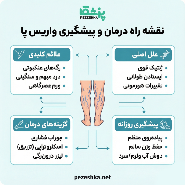 - استفاده از جورابهای واریس یا بانداژهای فشاری طبق دستور پزشک